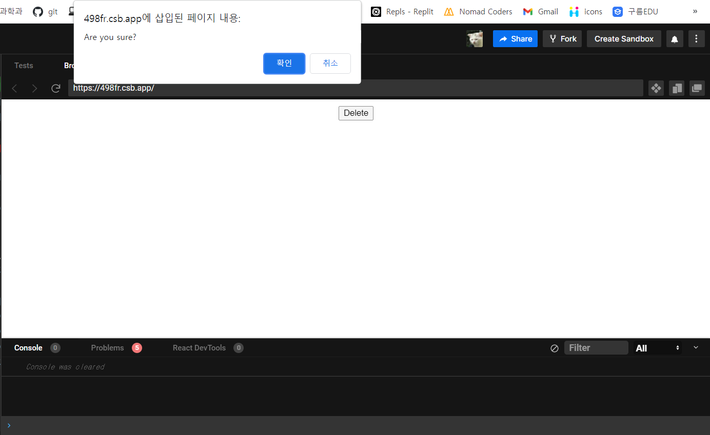 < 취소 선택 후 console창 >