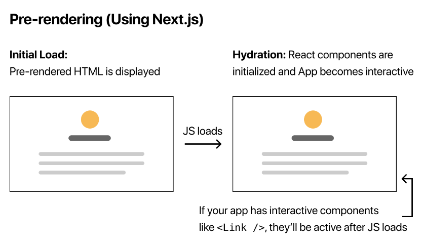 반면, next.js는 pre-reloading을 통해 미리 데이터가 렌더링된 페이지를 가져올수 있게 해준다.