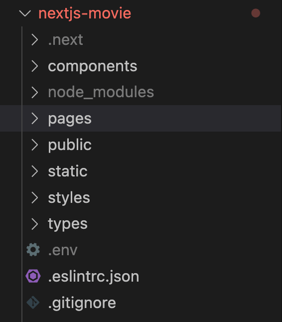 page 폴더 아래 여러 폴더 및 파일을 생성해보았다.