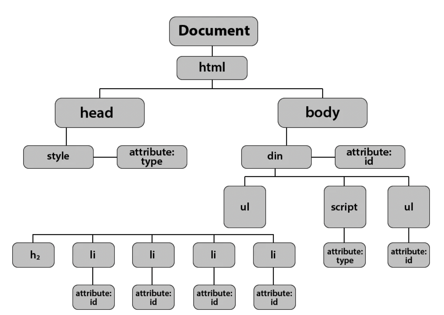 HTML 또는 XML 문서에 접근하기 위한 인터페이스로, HTML element들을 Tree 형태로 표현한 것이다.