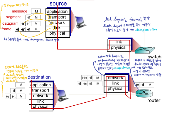 :source에서 destination으로 보낼 때 헤더를 붙여서 보내는 것