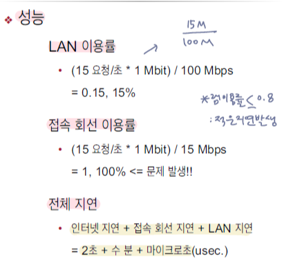 -80% 미만의 이용률의 경우 접속 회선 지연은 수십 밀리초 소요(10ms라 가정)