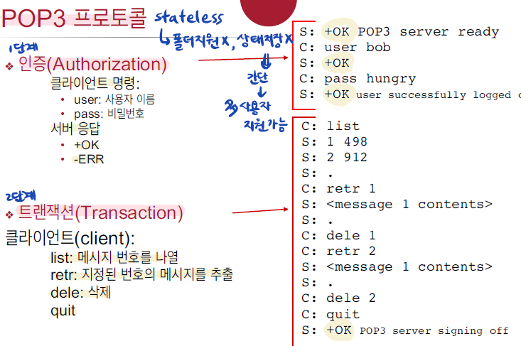 -SMTP는 수신자의 서버에 메시지를 전송하고 저장-메일 접속 프로토콜이 서버로부터 메시지를 추출