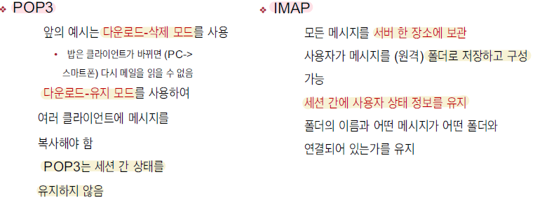 -SMTP : PUSH 프로토콜 -> 메시지를 보내는 프로토콜