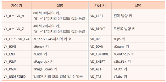 -입력된 키를 판별하기 위해 가상키(Virtual Key) 값과 비교