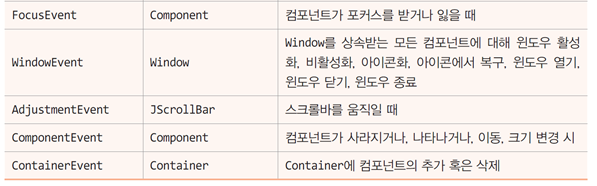-추상 메소드가 하나 뿐인 리스너는 어댑터 클래스가 없다. Ex) actionlistener, itemlistener