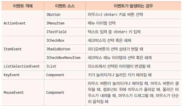 -이벤트 소스 : 이벤트를 발생시킨 GUI 컴포넌트
