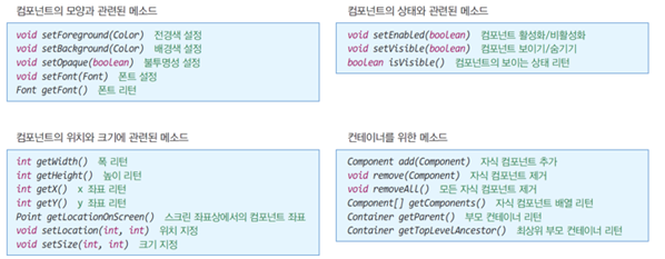 -JButton(String text, Icon image) : 이미지+문자열을 가진 버튼