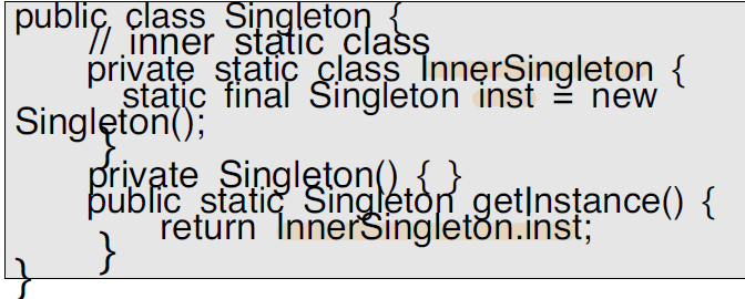 - 내부 정적 클래스를 사용하면 JVM에서는 해당 singleton calss를 메모리에 load(적재)할 때,